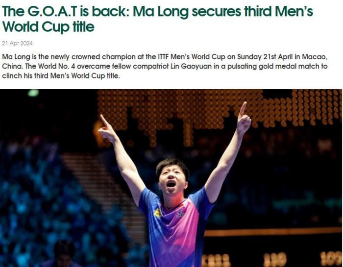 生涯至今第30个世界冠军!国际乒联盛赞马龙:历史最佳回来了