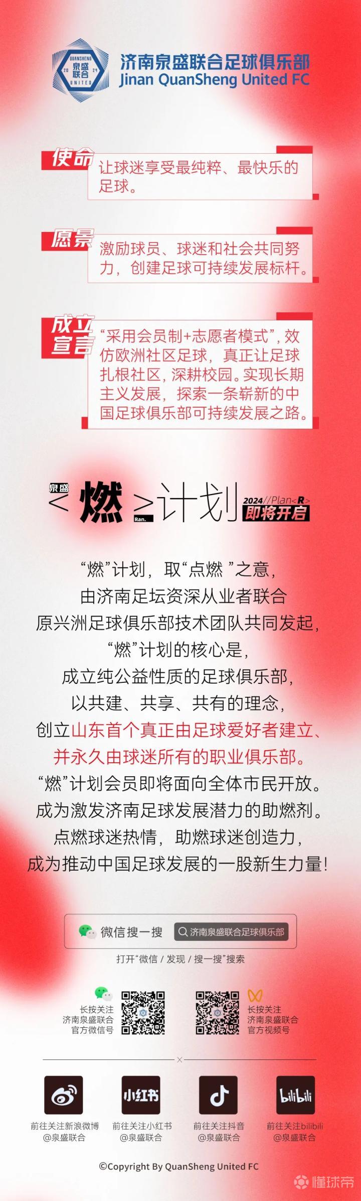 作为济南泉盛联合足球俱乐部的热忱参与者,我们愿奉献自己的激情和才智。这是我们勇敢迈出的新步伐。我们将吸收过去的经验和教训,以更加坚定的信念和决心,迎接新的机遇和挑战。