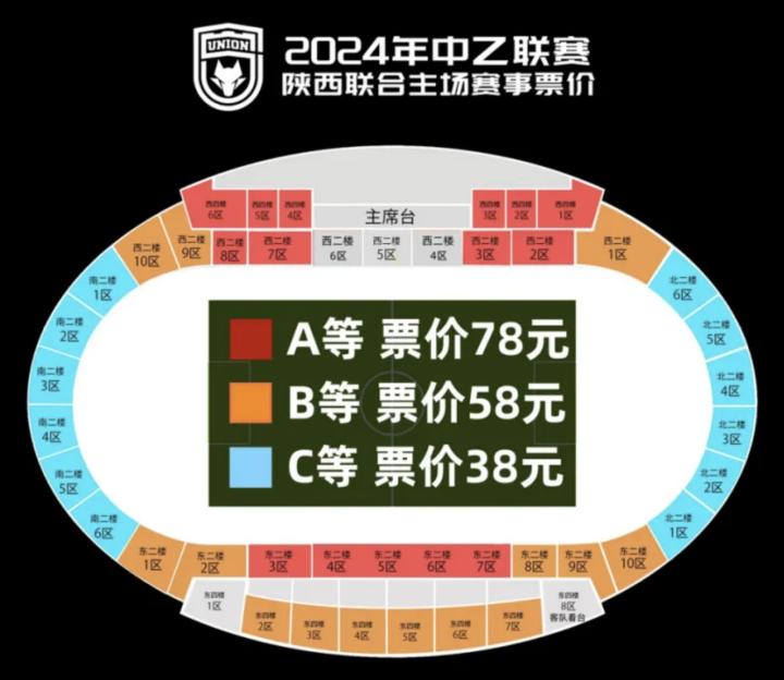 陕西联合将主场搬回渭南后,公布了与泰安天贶的比赛票价,分为38元、58元、78元三档。