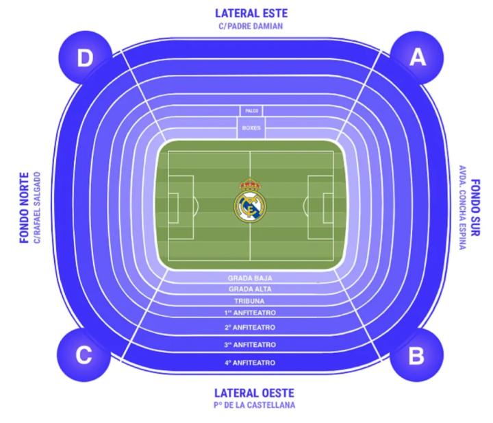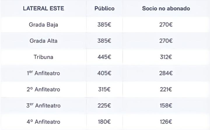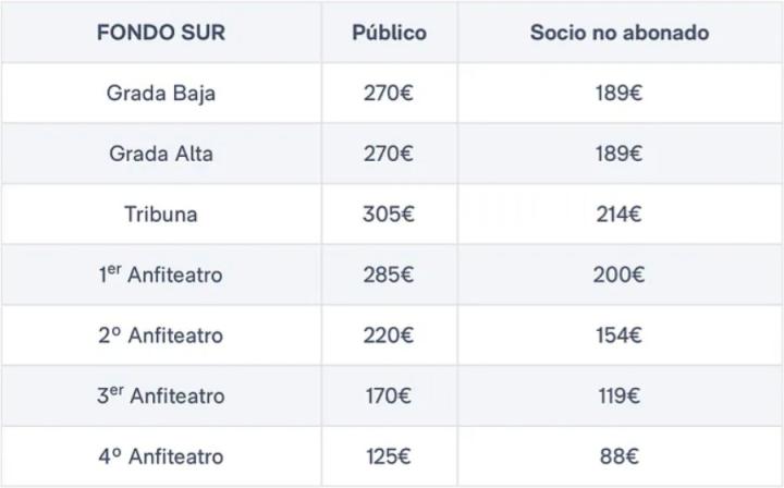 根据皇马本次公布的票价,对一般公众开放的门票价格从最便宜的125欧元开始,对会员则是88欧元,位于北南两侧的第四层看台,到东西两侧的侧面看台的最高票价为445欧元。
