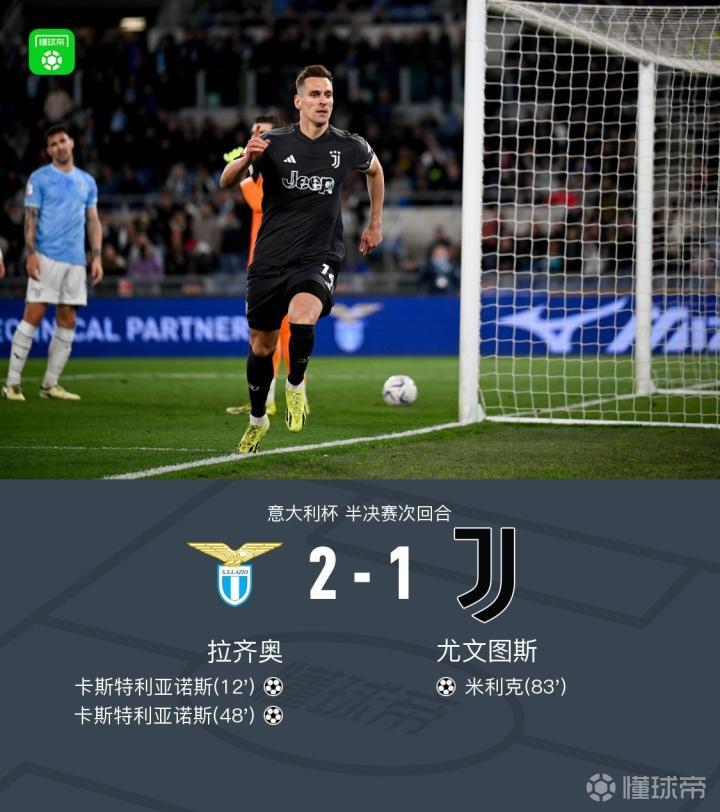 尤文在意大利杯半决赛中的两球优势还没攥多久就被拉齐奥化为乌有,不过他们还是有惊无险地在最后时刻成功拿到了意大利杯决赛的门票,这意味着尤文在这个糟糕的赛季仍然可以争夺冠军