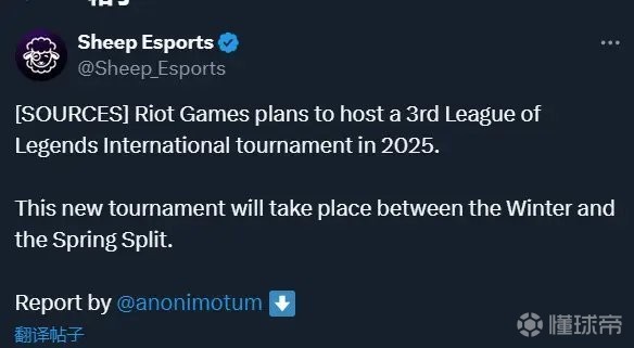 外媒爆料:2025年起LOL将新增第三个世界赛事,三四月份打