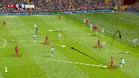 在比赛的最后15分钟,利物浦断球成功重新获得球权,并迅速向前发起反击。当萨拉赫接球并转向中路时(第一幅图),他有两个队友处于空档位置——罗伯逊,以及与站在更具侵略性传球线路上的加克波(第二幅图中的黑箭头)。