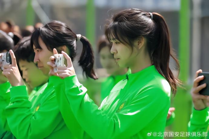 今天上午,北京国安一线队训练场迎来一群美丽的访客,北京国安首体院女足全队来到高鑫基地,集体观摩一线队训练课。
