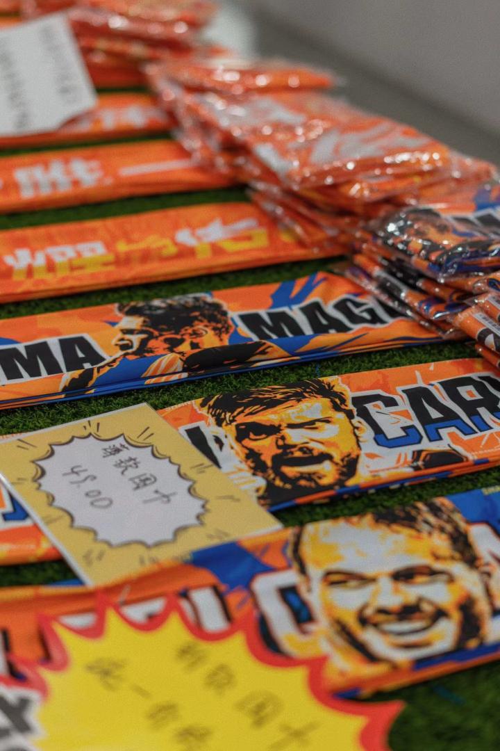 小朋友了爱惨了这根橙色的冰激凌,我俩学着其他球迷的样子,在楼梯上席地而坐,融入一片橙色,这样的氛围曾经期待了很久。第二天一早,我们赶飞机去长春,抱着侥幸心理又来逛了一次,店员了解了我们的情况后,打开卷帘门让我们进去选购了纪念品。