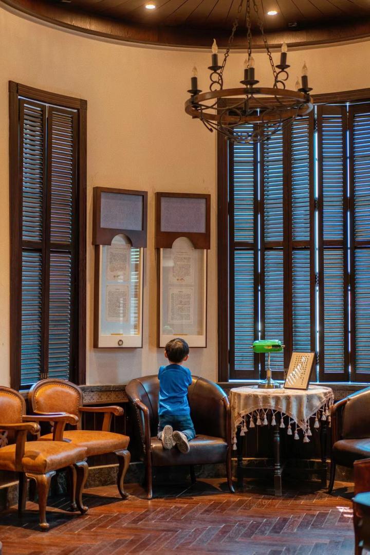 门口有一间复古餐厅,这里面喝咖啡太惊艳了,场景是民国影视剧里的摆设,精致优雅,细节很考究完全不需要p图。小朋友很喜欢胶州铁路博物馆里的建筑风格,一直:“哇哦~好漂亮!”边上的文创店还能集章,胶济铁路博物馆与FLASHBACK联合推出的实景解谜游戏——《胶济档案:消失的宝藏》,可以拿着皮本本在博物馆抽丝剥茧,特别过瘾。