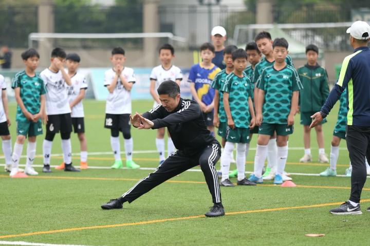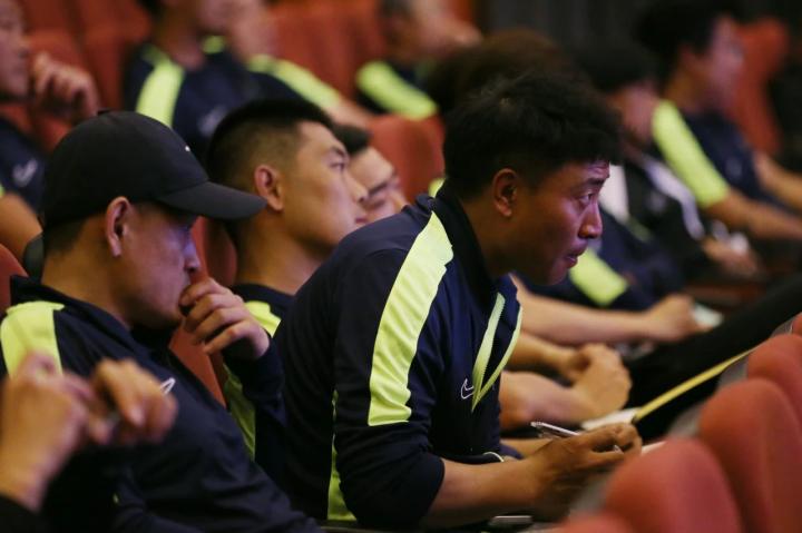 在梯队日常训练研讨、理论课后,4月21日全天,在足校礼堂和中泰基地9号场地分别进行了浙江FC青训大纲体能环节理论分享和场地实践课。