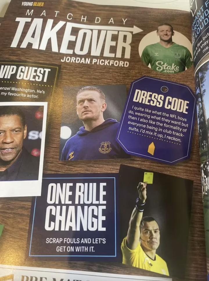 在赛前球队的比赛日队刊中,这位门将的一些言论让人感到困惑。当被问及他想要在足球中改变的一个规则时,这位英格兰门将回答说:“取消犯规,让比赛继续进行。”