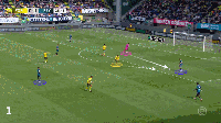 当埃因霍温中后卫博斯卡利接到球时,吉梅内斯已经掐住了一个方向的传球路线,而明特则急忙封住了朝向左侧的传球路线。 当明特参与压迫时,两位中场廷贝尔和魏费尔,也通过一对一地逼抢限制住了埃因霍温的中场球员,让博斯卡利没有传球选择。最终,明特从埃因霍温后卫脚下断球,并破门得分。