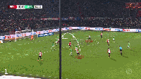 他们也可以运用更加精细复杂的方式,在中路防区制造空间。在对阵乌德勒支的比赛中,从中后卫特劳纳出球,到边锋派尚完成射门,中间只经过了3次传递。