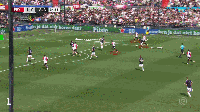 在对阵阿贾克斯时,费耶诺德在高位完成反抢,斯滕斯持球的同时,右后卫纽科普正在外线高速套上。接球后,纽科普并没有盲目横扫门前,而是骗过三名阿贾克斯防守球员,将球回敲给点球点附近无人看防的扬库巴-明特。