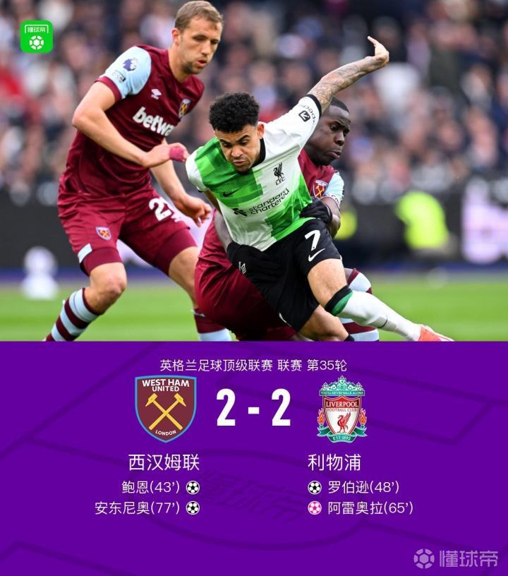【剑南春|利物浦2-2西汉姆联近5轮仅1胜,罗伯逊破门鲍恩传射】
