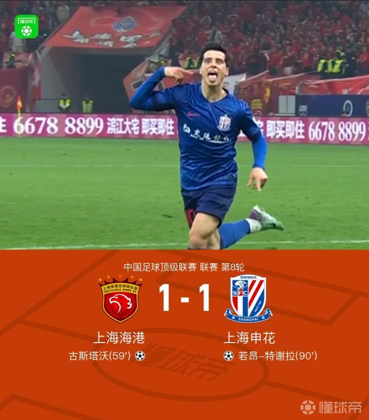 【雪佛龙|海港1-1申花,若昂-特谢拉绝平,汪海健补时绝杀被吹】