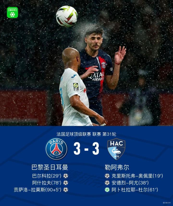【剑南春|巴黎3-3勒阿弗尔无缘提前夺冠,拉莫斯读秒绝平+助攻】
