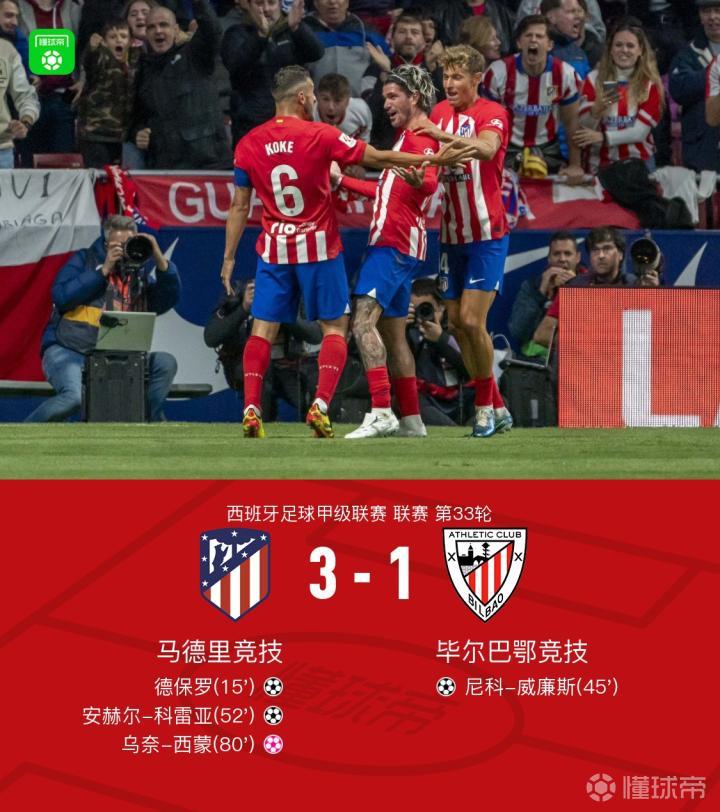 【马竞3-1毕尔巴鄂竞技,科雷亚、德保罗破门,利诺抽射造乌龙】