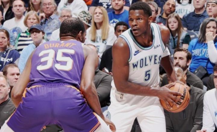G2比赛中,森林狼主场105-93战胜太阳,森林狼队麦克丹尼尔斯拿下25分8板3助全面数据,太阳队杜兰特布克合砍38分;