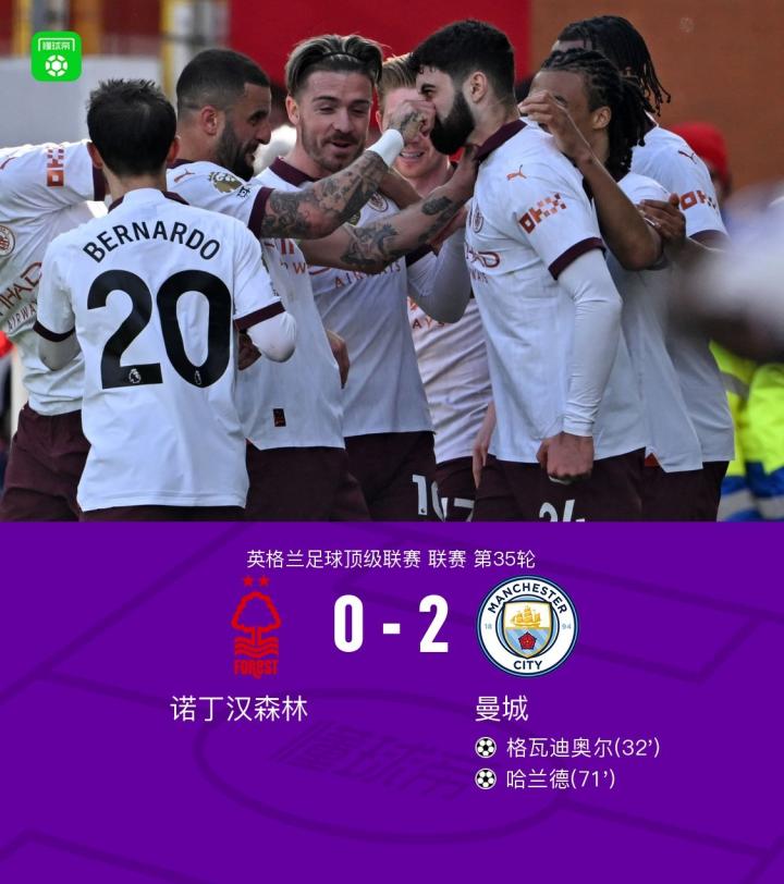 【剑南春|曼城2-0森林取英超5连胜,格瓦迪奥尔、哈兰德建功】