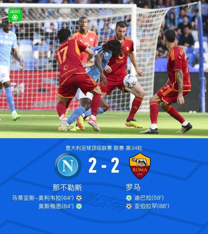 【那不勒斯2-2罗马,亚伯拉罕绝平救主,迪巴拉、奥斯梅恩点射】
