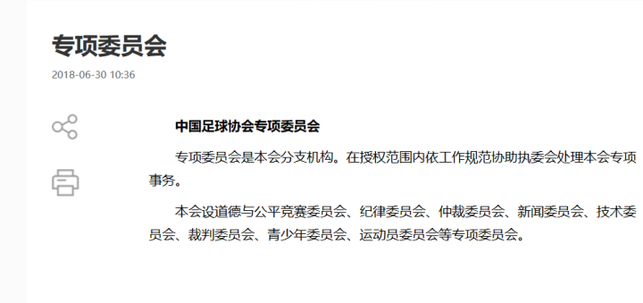 (足协官网关于”专项委员会“的介绍)