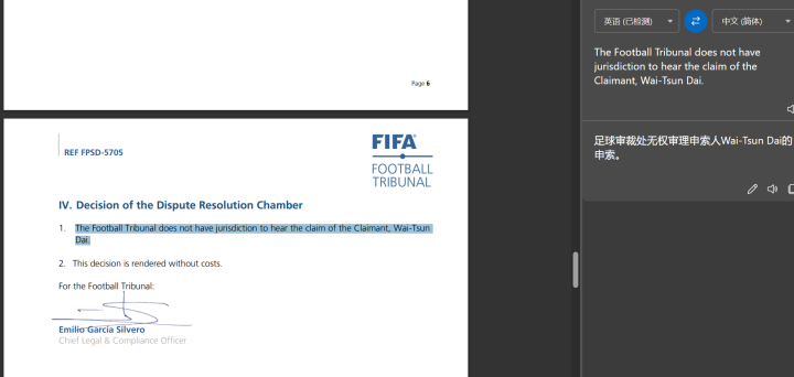 (FIFA公布的仲裁文件)