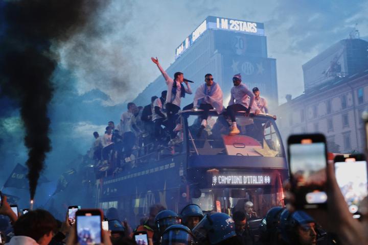 在周日与都灵的比赛之后,国米展开了夺冠庆典,球员以及俱乐部工作人员们乘坐着一辆庆祝巴士穿越米兰,米兰城化作了一片蓝黑色的狂欢海洋。市中心的杜奥莫广场上到处都是蓝黑色的旗帜,当国米的球员们驶入广场时,现场爆发出雷鸣般的欢呼声,“Forza Inter”的口号在整个城市回荡。