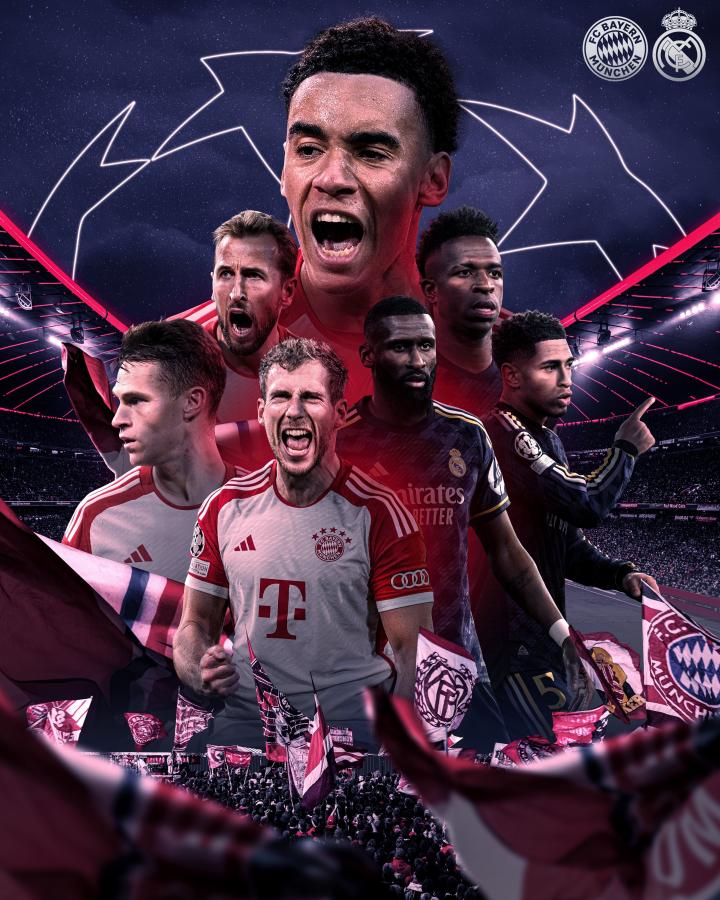 欧冠半决赛首回合,拜仁将主场对阵皇马,赛前,拜仁官方发布比赛海报。