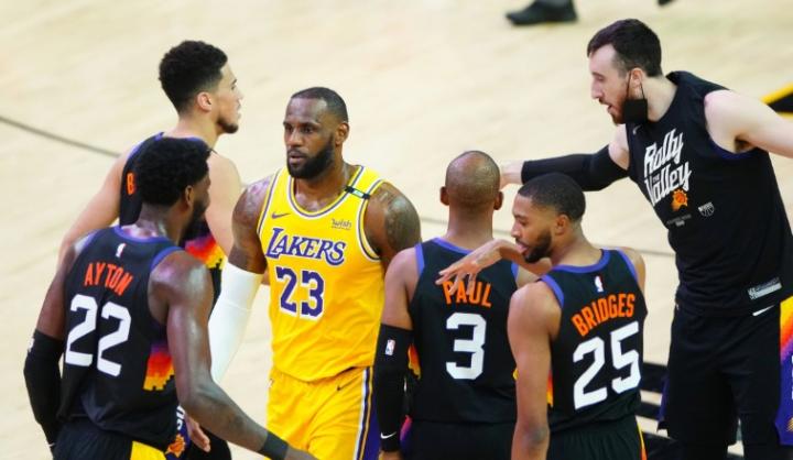 2021年,詹姆斯所在的湖人队拿到42胜30负的战绩(因疫情,该赛季常规赛场次缩水),拿到了西部第七;他们在季后赛第一轮当中遇到了布克、保罗和艾顿率领的西部第二太阳队,最终太阳在季后赛首轮4比2淘汰湖人,这是詹姆斯生涯第一次在季后赛首轮被淘汰。