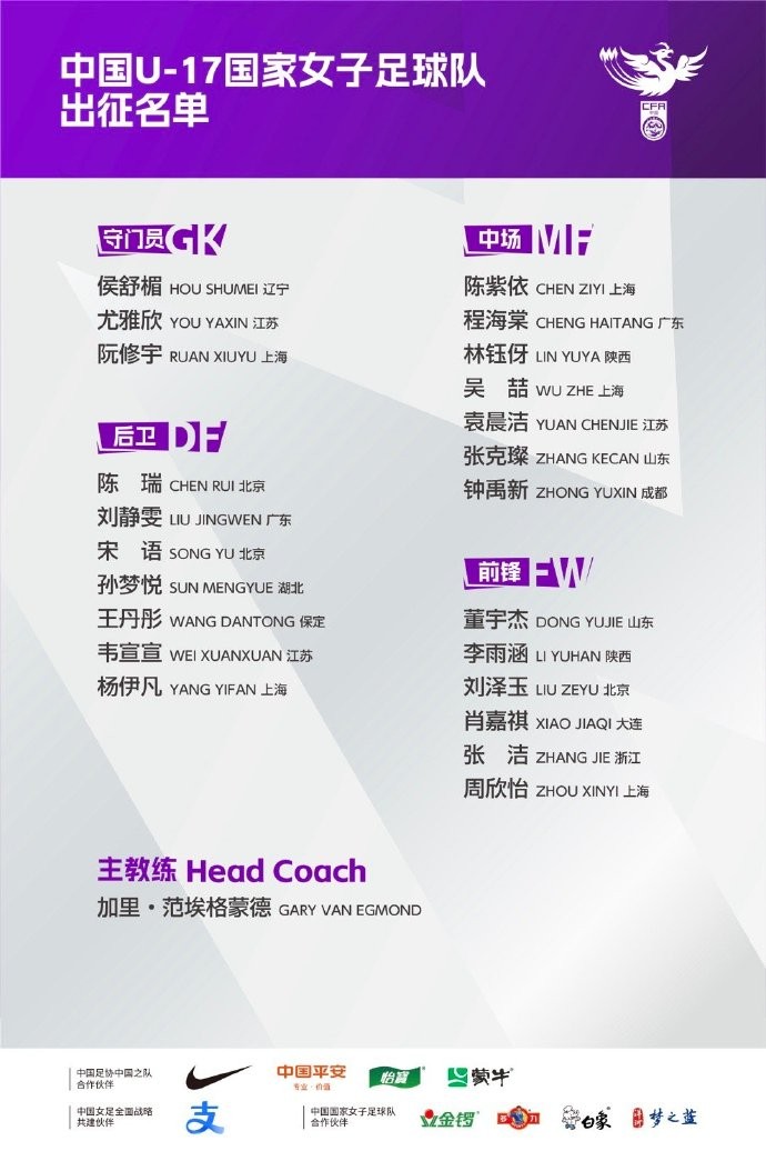 4月30日晚,中国U17国家女子足球队将从广州启程,飞赴印度尼西亚征战2024年U17女足亚洲杯。球队公布了本次出征的大名单。
