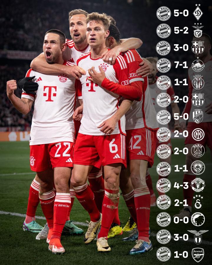 据统计,拜仁近24个欧冠主场只输了1场比赛,这场输球发生在2021年4月,2020-21赛季的欧冠1/4决赛,拜仁主场2-3不敌巴黎,其余23场欧冠主场的比赛,拜仁取得了20胜3平的骄人战绩。