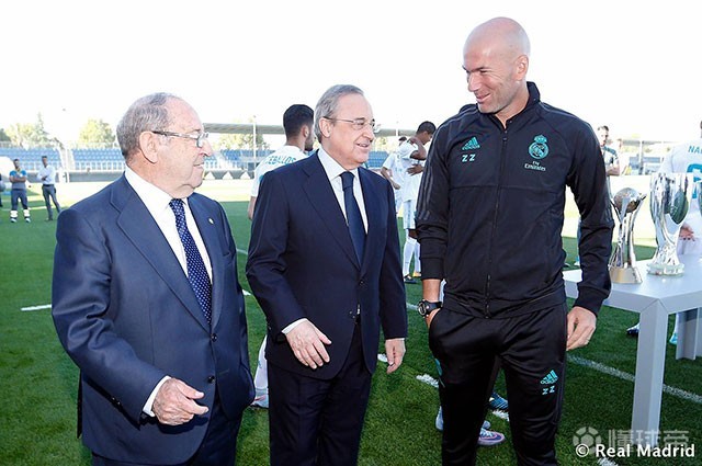在现场,弗洛伦蒂诺和亨托与球员们一一打招呼,并与齐达内及其教练团队进行了交流,随后大家踏上了皇马体育城的1号球场,拍摄了这张全家福。