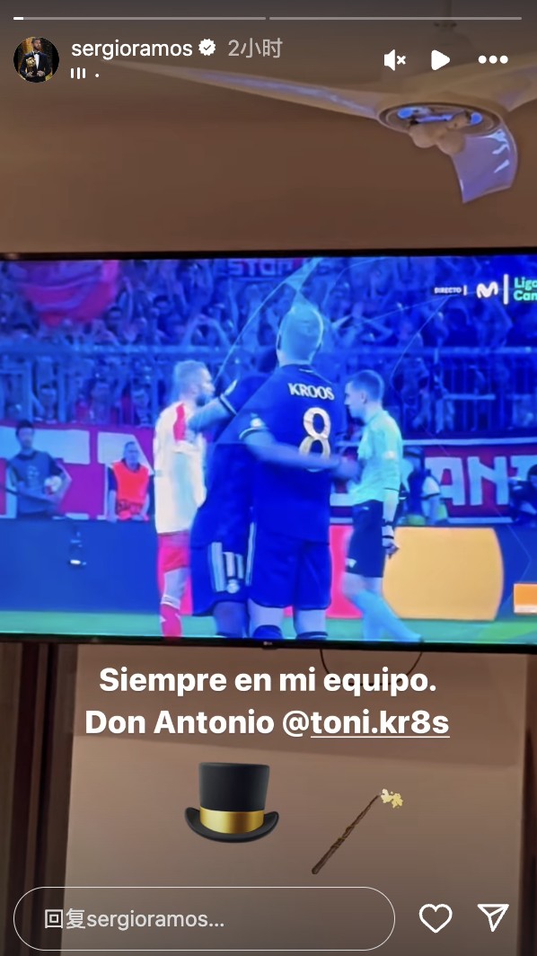 拉莫斯社媒盛赞克罗斯:我永远的队友,魔术师来杯冰可罗 @懂球帝2024-05-01 08:46北京时间5月1日凌晨3点,欧冠半决赛首回合,拜仁2-2战平皇马。赛后,皇马名宿拉莫斯在社媒称赞克罗斯的表现,表示克罗斯是自己永远的队友。在对阵拜仁的比赛中,皇马中场克罗斯助攻维尼修斯破门。比赛结束后,前皇马队友拉莫斯也在社媒晒出了自己在家中观看直播的照片,配文写道:“我永远的队友,克罗斯!”并配上了魔术师帽子和魔法棒表情包。展开更多