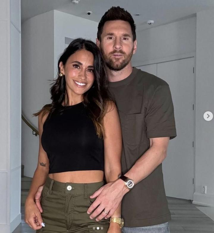 在迈阿密热火主场对阵凯尔特人的比赛后,梅西更新了个人社媒,他晒出了与妻子安东内拉以及孩子们的合影。照片中,梅西的三个孩子都身穿热火队10号球衣。梅西配文道:“家庭&篮球 。”