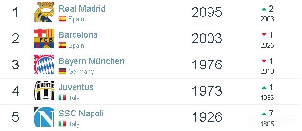 俱乐部排名:皇马世界第一,上港亚洲第十