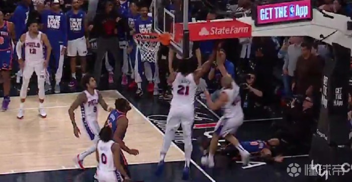 比赛还剩0.7秒,布伦森的投篮被巴图姆扇飞到篮板后面出界。