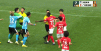 第39分钟,徐彬身后铲球吃到黄牌,随后双方球员发生冲突