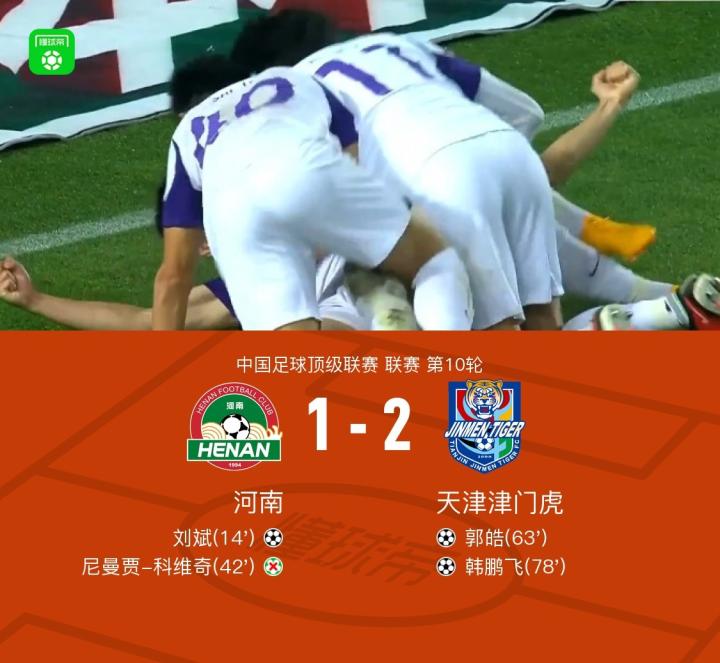 津门虎2-1逆转河南,河南两造乌龙被吹,韩鹏飞、郭皓建功