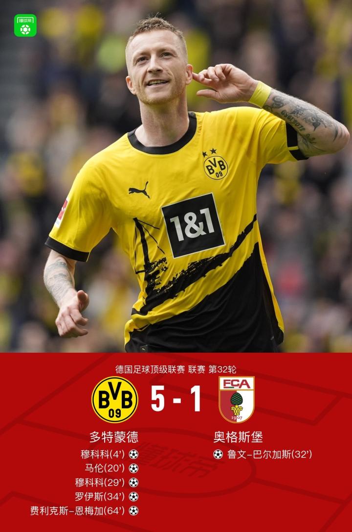 剑南春|多特蒙德5-1奥格斯堡,罗伊斯两传一射,穆科科双响