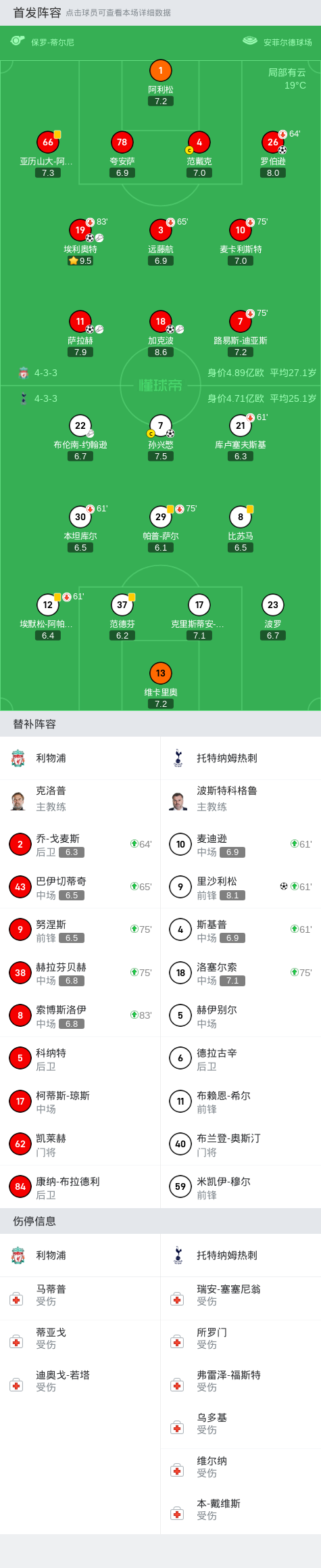 上场替补:61分钟10-麦迪逊, 75分钟18-洛塞尔索, 61分钟9-里沙利松, 61分钟4-斯基普