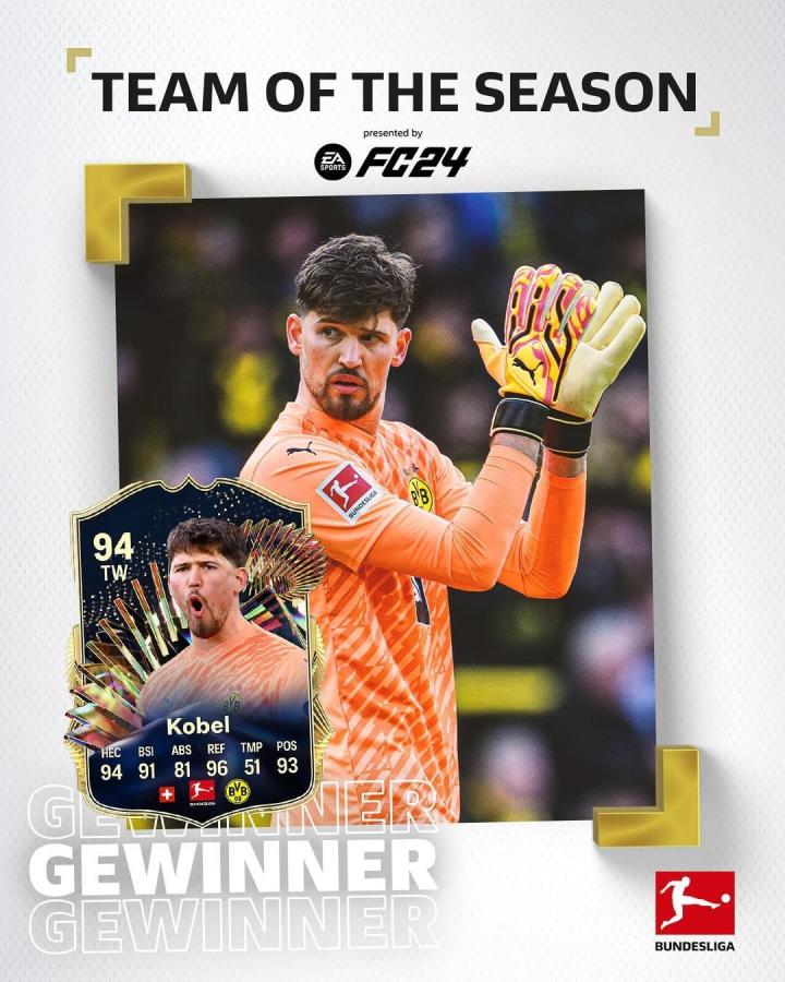 德甲赛季最佳阵容公布,恭喜科贝尔入选!🧤