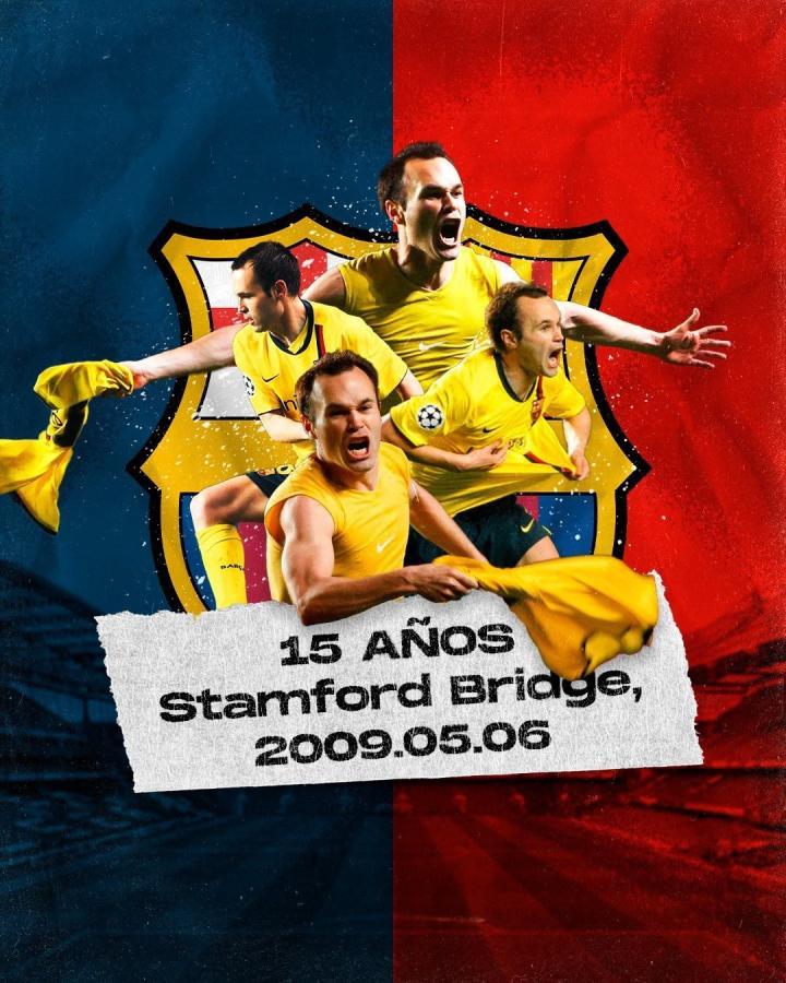 今日,小白伊涅斯塔在社媒发文,纪念15年前在斯坦福桥面对切尔西的欧冠半决赛次回合中,打入绝平进球的时刻。