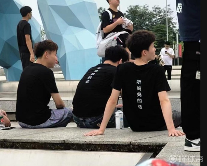 北京时间5月6日,CBA季后赛半决赛G3,广东主场对阵辽宁。广东球迷身穿印有徐杰怒吼张镇麟漫画图的T恤,背后印有文字:“听妈妈的话。”