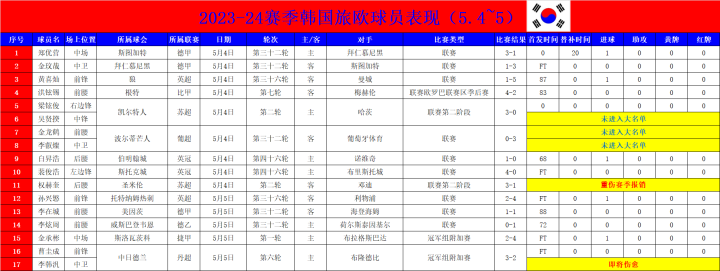 附:韩国旅欧球员表现(5.4~5)