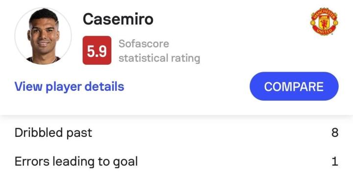 赛后根据统计,曼联自2015-16赛季开始以来一共在各项赛事里出战了513场正式比赛,而对阵水晶宫的卡塞米罗则不幸成为了红魔在此期间首位在单场比赛中被突破超过7次的球员。