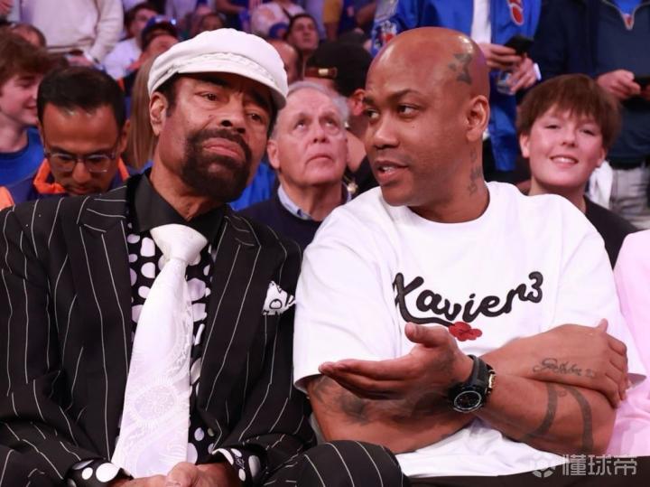 前尼克斯、北京男篮球员斯蒂芬-马布里现身纽约主场麦迪逊广场花园,观战老东家的比赛。在他身旁的是尼克斯名宿沃尔特-弗雷泽。