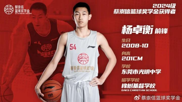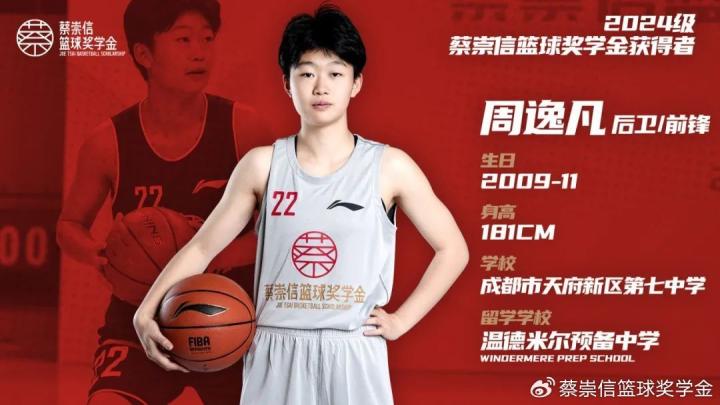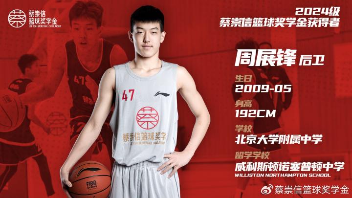 2024级蔡崇信篮球奖学奖名单:5男1女入选,今秋启程赴美深造