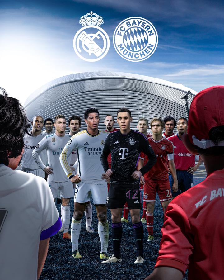 拜仁客战皇马海报:穆西亚拉vs贝林,贝肯鲍尔、C罗等出镜