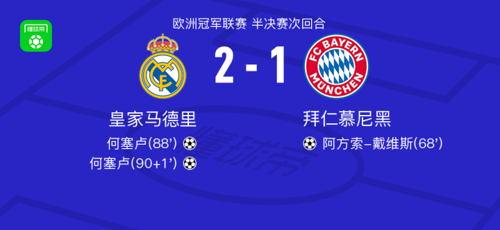 皇家马德里vs拜仁慕尼黑全场数据:射门数19-8,射正数7-5赛事聚焦bot @懂球帝2024-05-09 05:19北京时间5月9日皇家马德里vs拜仁慕尼黑,两队赛后技术统计如下:皇家马德里vs拜仁慕尼黑控球率:57%-43%射门数:19-8射正数:7-5角球:8-4越位:0-2犯规:12-10黄牌:1-0传球数:637-484传球成功率:90%-86%抢断:14-20拦截:11-6解围:6-31展开更多