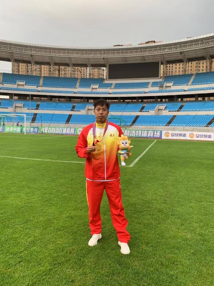 那是第十四届全运会群众比赛足球项目十一人制男子农村乡镇组的赛事。张寒冰作为陕西省咸阳彬州市龙高镇代表队的主力前锋,一路随队杀入决赛,通过点球大战战胜内蒙古,拿到了金牌。