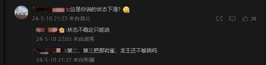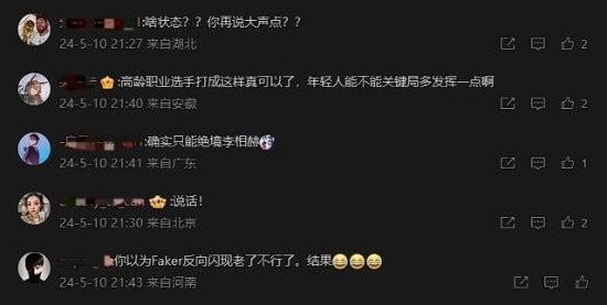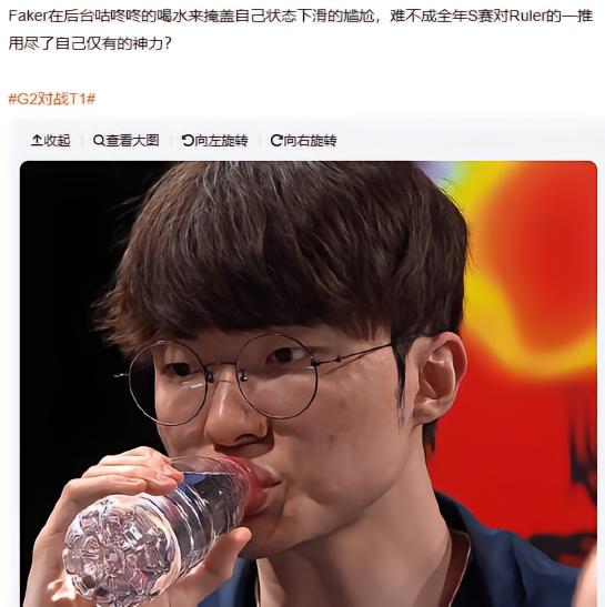 有网友表示,Faker在这场比赛中状态下滑,甚至在后台咕咚咚喝水来掩盖尴尬;但在评论区,有不少网友对此进行反驳,认为决胜局Faker狐狸逆风C赢,仍然是“绝境李相赫”,“管这叫状态下滑?”