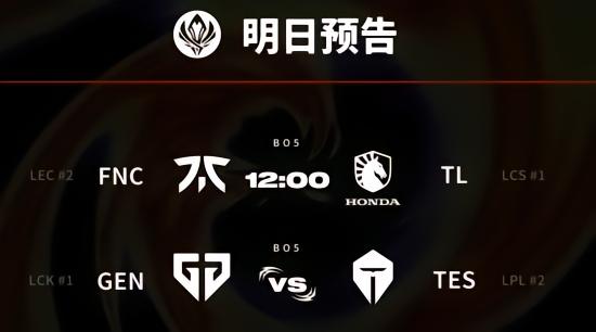 明日,将迎来FNC对阵TL、GEN对阵TES两场BO5的比赛,Faker带队的T1将于后天回归。
